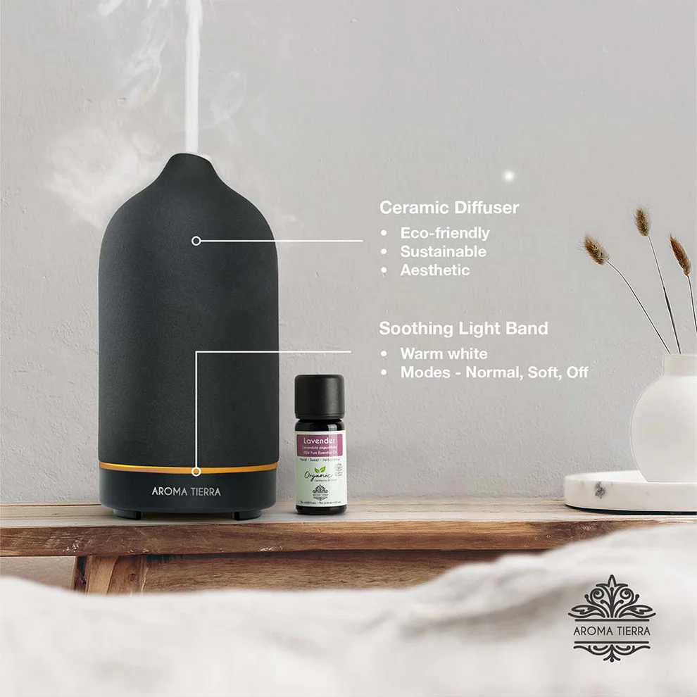 Upgrade your space with Santorini ceramic handcrafted diffuser that boasts aesthetic design, rustic matte finish, and soothing warm white light.